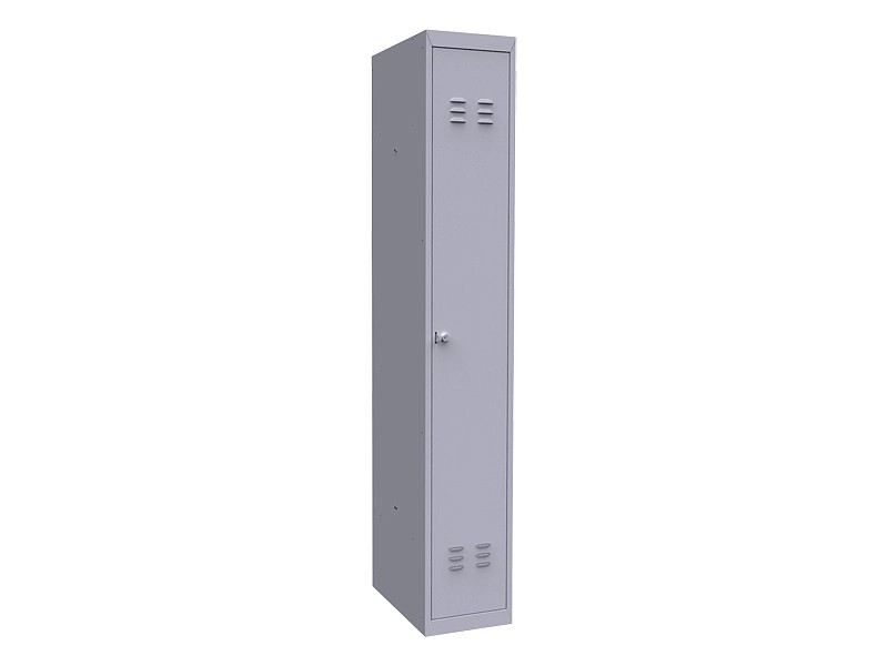 Металлический шкаф для одежды ШР 11 L300(1850x300x500 мм, основная секция) предназначен для хранения одежды на предприятиях, в спортивных учреждениях, образовательных учреждениях и других помещениях различного назначения. Шкаф для одежды имеет "жалюзи" для вентиляции на двери и проушину под навесной замок. Состоит из одной секции, внутри установлена полка. Изготовлен из стали толщиной 0,6-0,8 мм, поставляется в разобранном виде. Для сборки рекомендуется использовать заклёпочник. Для увеличения числа ячеек хранения к основной секции можно пристыковать несколько дополнительных секций ШР 11 L300Д.