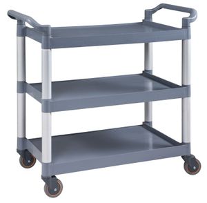 Тележка сервировочная Viatto изготовлена из пластика. Имеет 3 полки размером 790х495мм. Расстояние между полками 310мм.